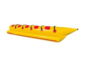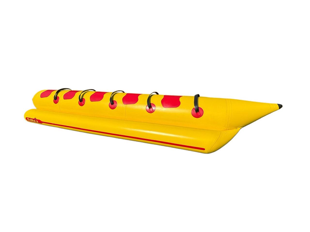 A Boia Banana Boat da Trilhas é ideal para proporcionar diversão com segurança em atividades aquáticas recreativas. Projetada para comportar até 5 pessoas, sua estrutura é reforçada e desenvolvida com PVC de alta resistência, garantindo durabilidade mesmo em uso intensivo.